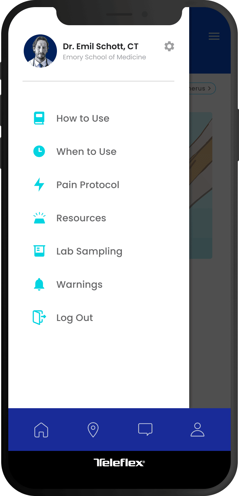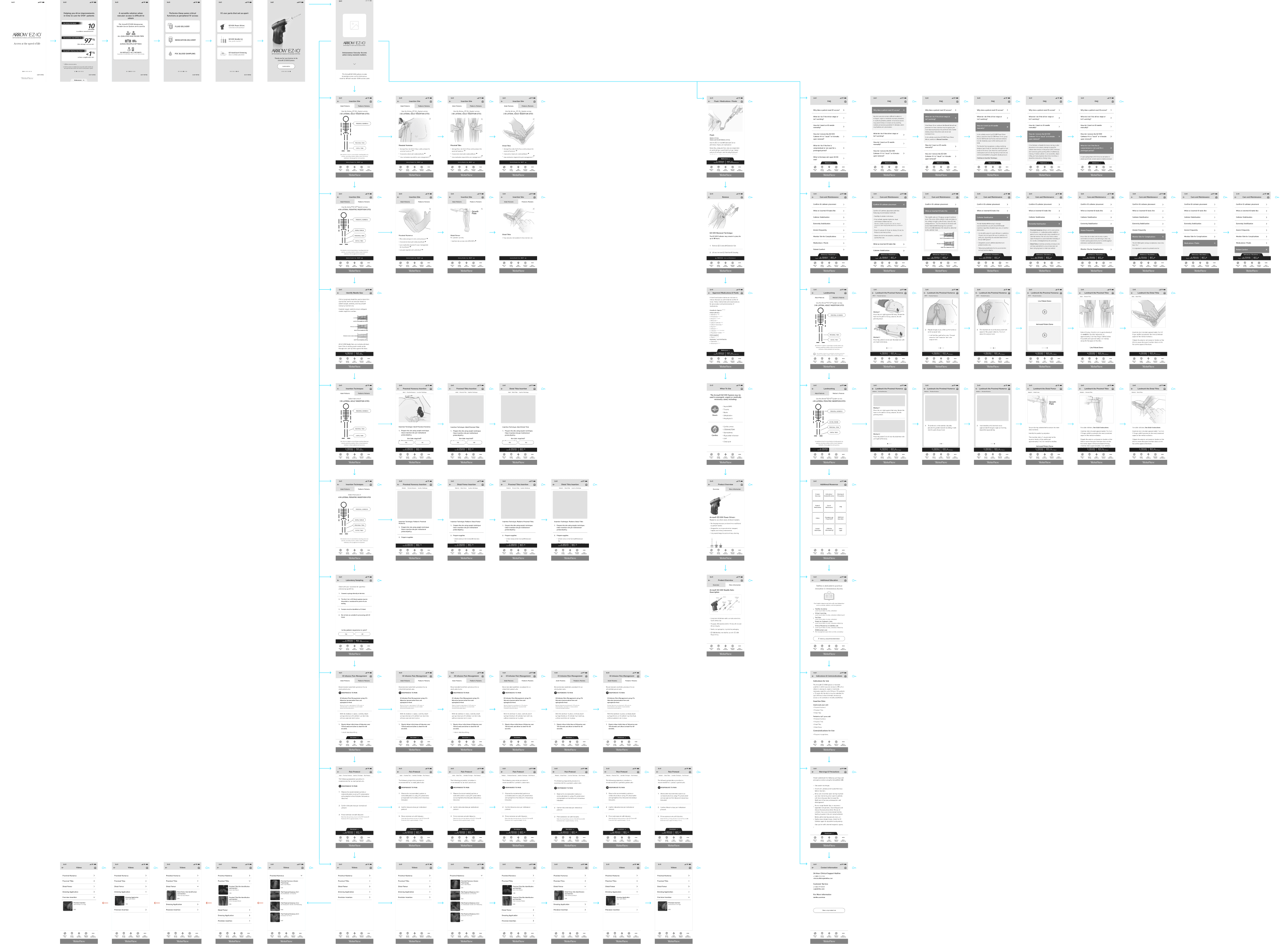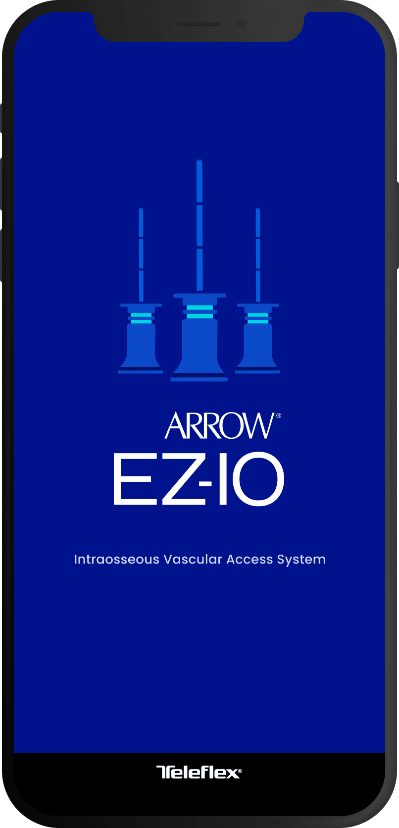 The following is a medium-fidelity wireframe prototype for the Teleflex EZ-IO Vascular Access System mobile application as detailed above.