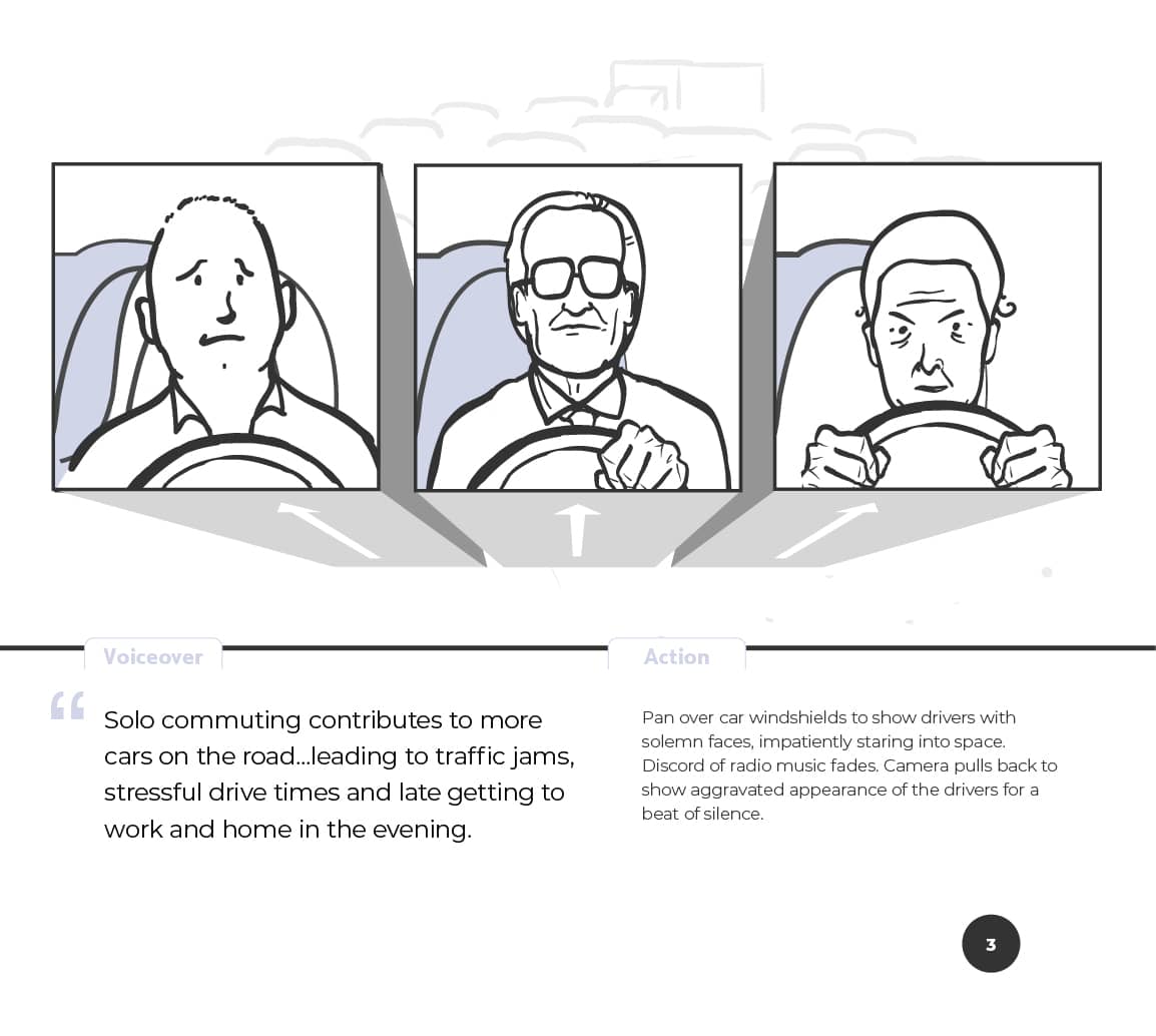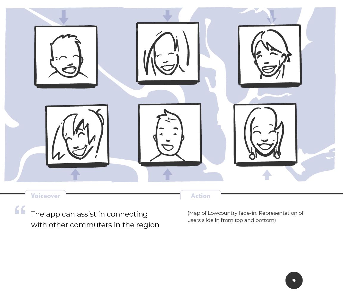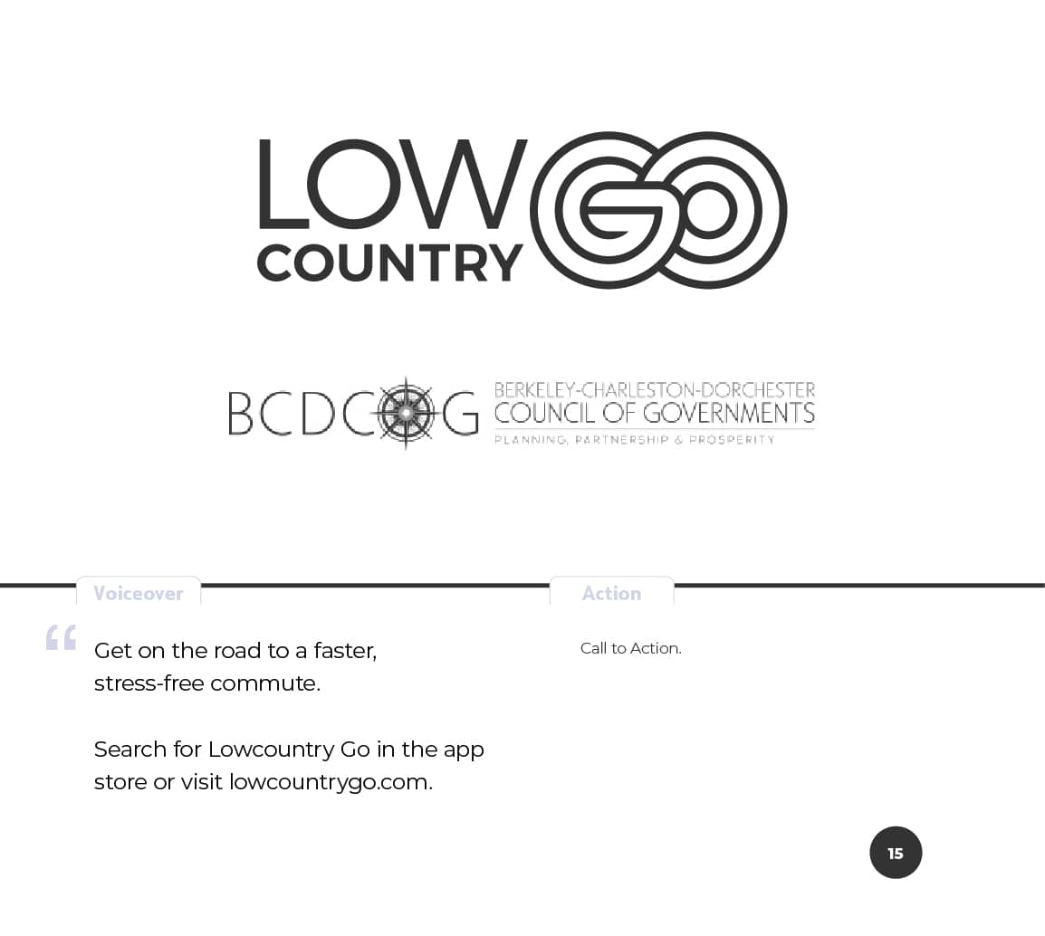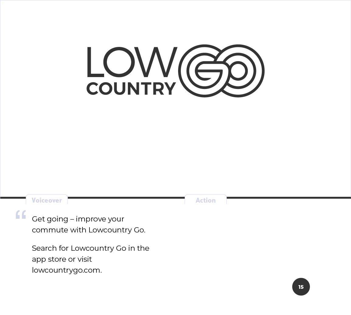 The following storyboards were created for an initiative of The Berkeley-Charleston-Dorchester Council of Governments. The Lowcountry GO initiative aims to reduce traffic congestion, improve environmental standards and urge daily commuters to seek alternative modes of transport. The effort was split into two videos, each highlighting a separate area of interest, one to describe the overall program and it’s intention, and the other to focus on the functionality of the initiative’s mobile app.