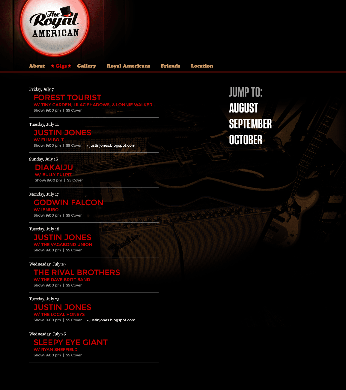 The Royal American is a bar located at 970 Morrison Drive. Sounds captivating. This was, however, a carefully planned dive bar in need of a website experience showing it’s rough edges and raw personality as one of Charleston’s premier musical venues as well as a watering hole to get the kind of beer you’d find at the VFW.